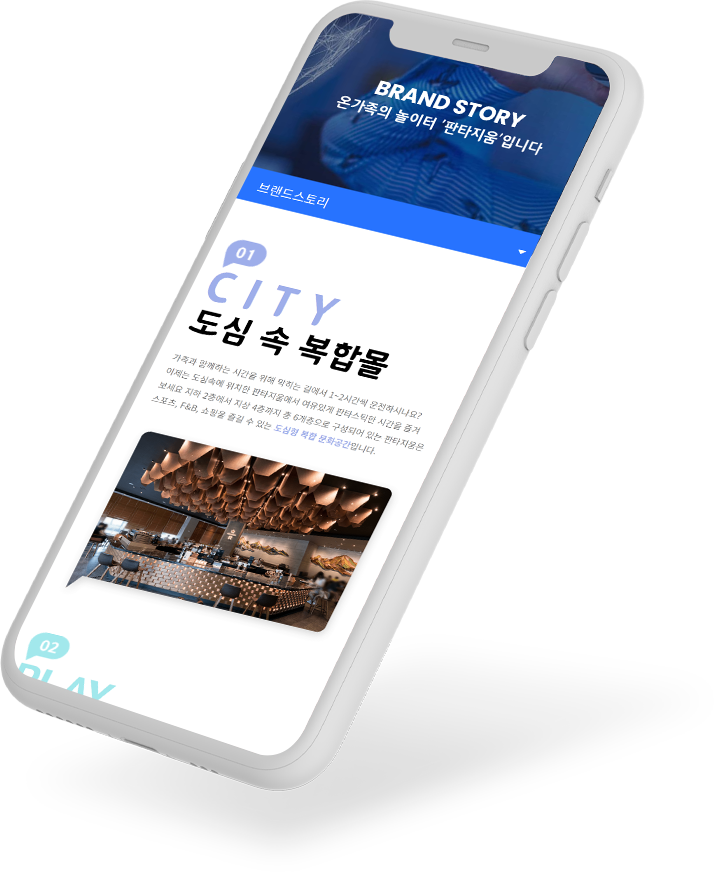 - 판타지움은 어른부터 아이까지 함께 즐길 수 있는 공간으로 다양한 엔터테인먼트 시설을 통해 모든 세대가 함께 어울리고 느끼는 패밀리형 놀이공간입니다. 더불어 취향에 맞게 선택할 수 있는 다양한 F&B 업장을 운영하고 있어 먹는 즐거움도 함께 하실 수 있습니다.