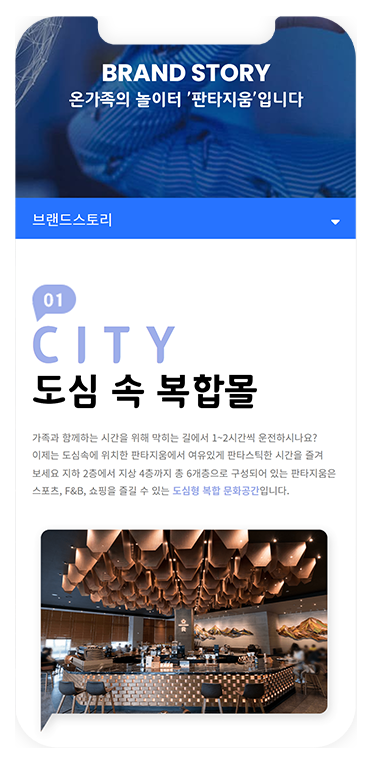 - 판타지움은 어른부터 아이까지 함께 즐길 수 있는 공간으로 다양한 엔터테인먼트 시설을 통해 모든 세대가 함께 어울리고 느끼는 패밀리형 놀이공간입니다. 더불어 취향에 맞게 선택할 수 있는 다양한 F&B 업장을 운영하고 있어 먹는 즐거움도 함께 하실 수 있습니다.