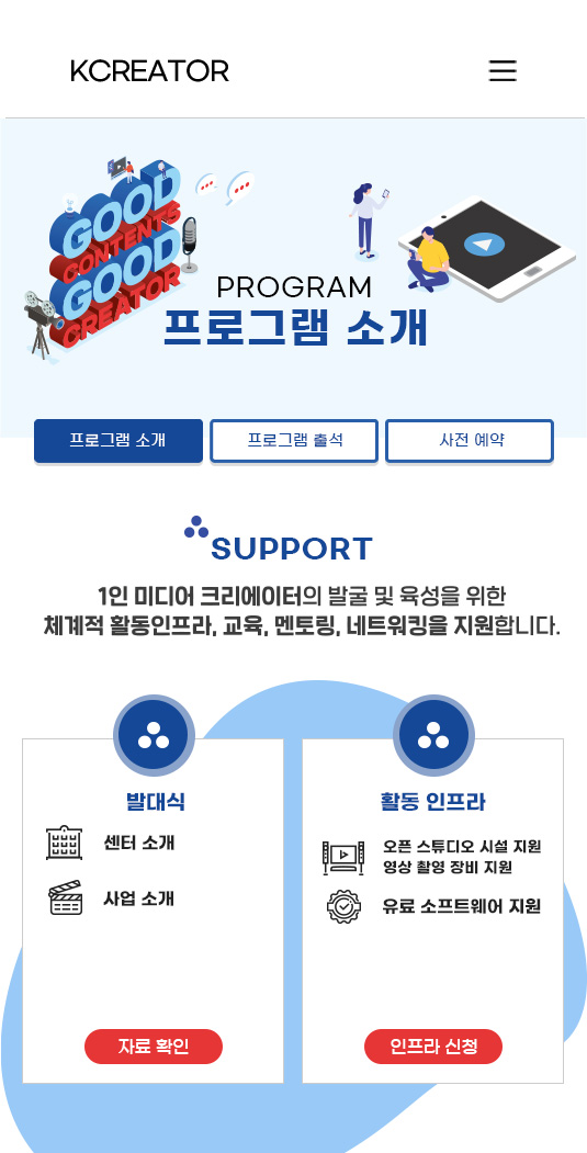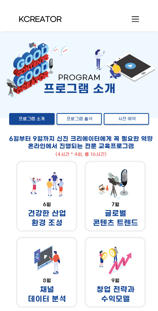 초기 성장 발판을 위한 콘텐츠 제작 인프라, 전문교육, 멘토링, 컨설팅, 네트워킹을 지원하는 사업입니다.